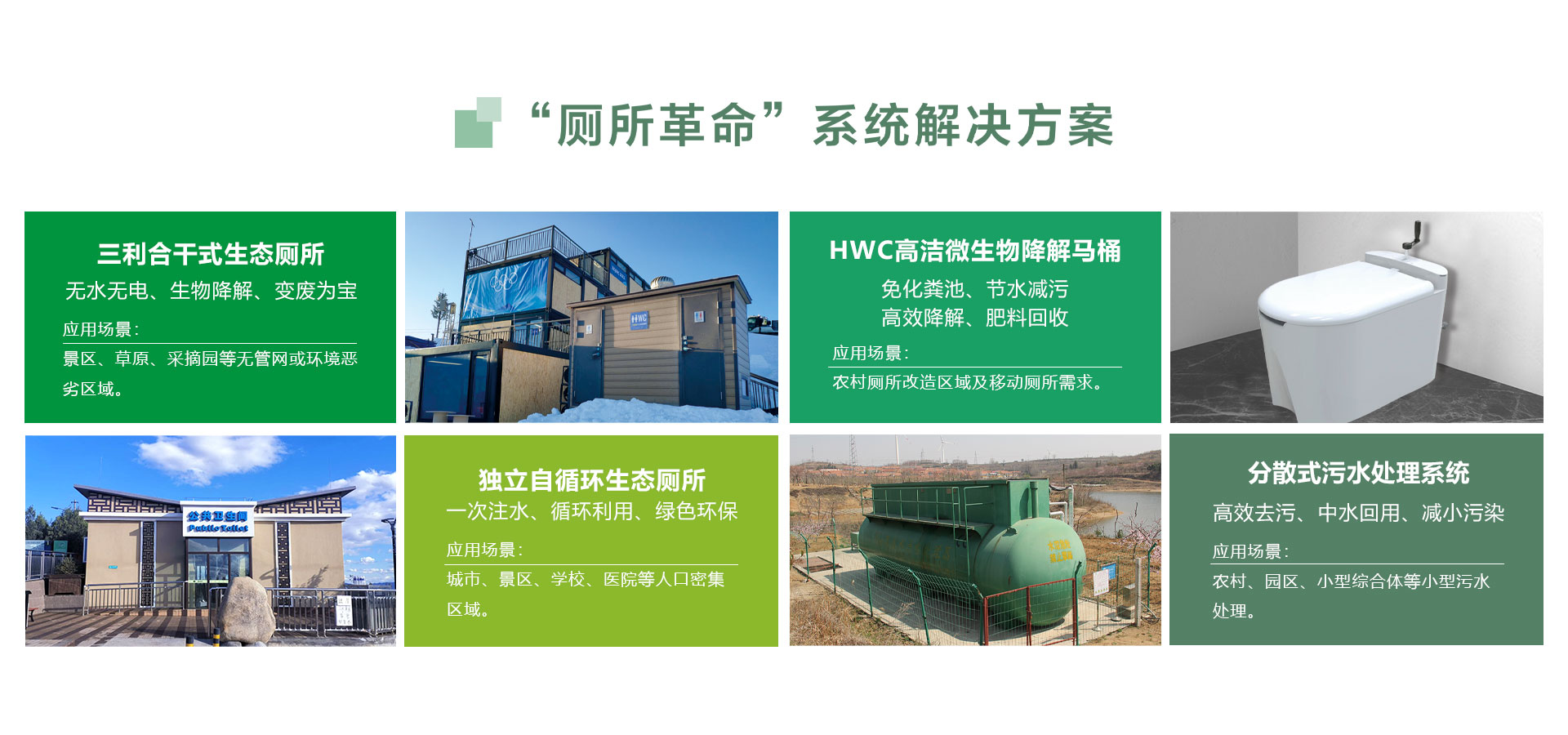 我們專注于“源頭”上的廁所革命,系統解決景區(點)、城市和農村三大領域的實際需求,是真正意義上的生態(tài)環(huán)保廁所。